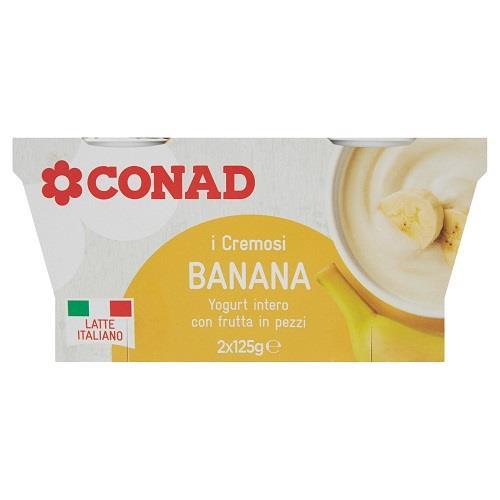 Conad Whole Yoghurt with pieces of Banana. Yogurt