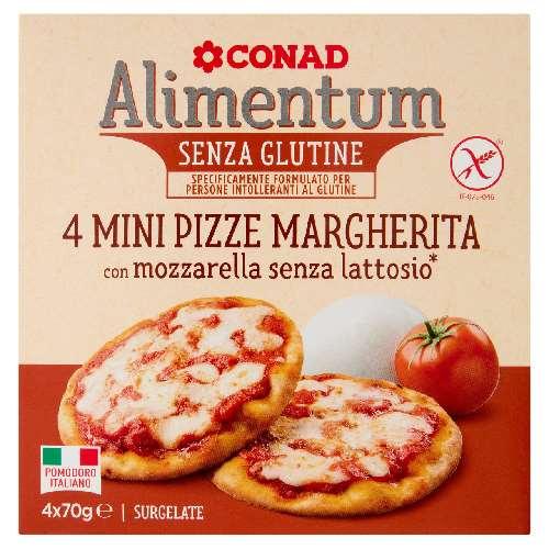 Description Gluten-Free products are specially formulated with gluten-free ingredients, using select raw materials and following scrupulously controlled production processes.Conad Alimentum Gluten-Free Mini Pizzas, featuring a thin, crispy dough, are stone-baked to give them all the flavor of traditional pizza. They are hand-topped with 100% Italian tomatoes and lactose-free mozzarella.A delicious aperitif, a break filled with fun and flavor… Any occasion is a good one to indulge in Alimentum Mini Pizzas! We support the future Pencil Case – PAP 21 – Wrapping Paper Collection – 7 – Plastic Collection Follow the rules of your municipality and find out more on www.conad.it Consumption Preparation: Cook before serving. Defrost for 15 minutes. Preheat oven to 220°C and bake for 5-6 minutes or until cooked through. Sales name Pre-cooked and frozen baked product with lactose-free mozzarellaGluten-freeSpecifically formulated for people intolerant to gluten Brand CONAD / ALIMENTUM Conservation Storage: Freezer****o*** (-18°C). See the recommended date on the package.Once thawed, the product cannot be refrozen; it must be stored in the refrigerator and consumed within the same day. To maintain the product at an appropriate temperature during transport to your home, we recommend removing the package from the counter at the end of your shopping and transporting it in the appropriate freezer bag.