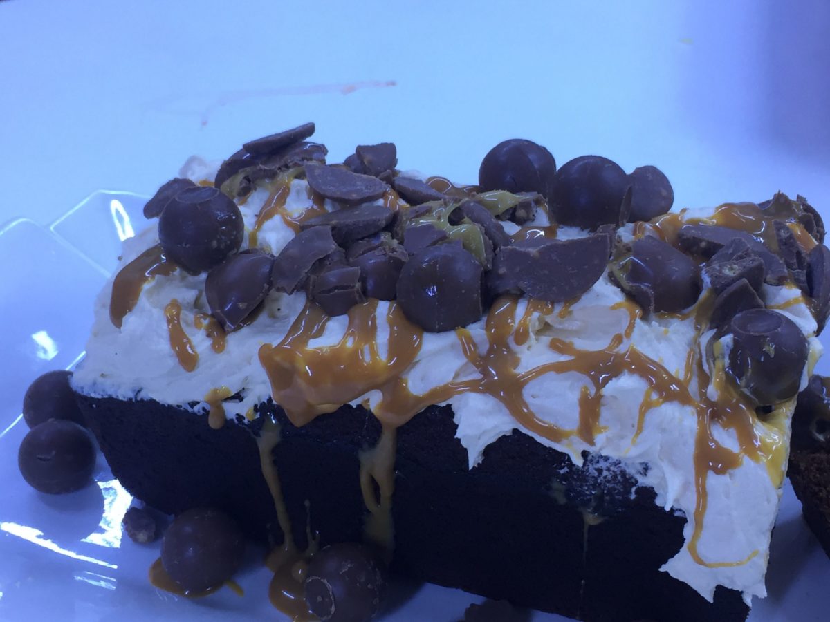 To make the icing, beat the butter, icing sugar and caramel; add the milk, a little at a time, until you have a creamy consistency