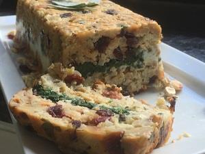 Spoon half the nut mixture into the loaf tin, pressing it down with the back of a spoon. Add the spinach, then spread the goats’ cheese on top of the spinach; spoon the remaining nut mixture on top