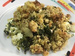 Preheat the oven to 200C/Gas6; mix the egg into the crumble mixture with a knife, then scatter it over the spinach and bake for 35-40 minutes until the crumble is piping hot and golden brown; scatter over a few extra thyme leaves and serve